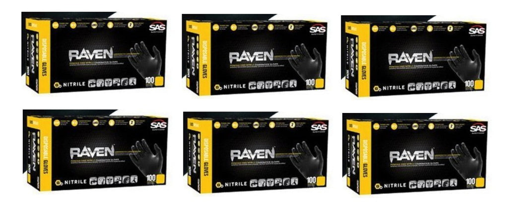 SAS Raven Black Nitrile Gloves, 7mil, powder-free. Large size, extra strength construction for demanding autobody work. Six boxes included.